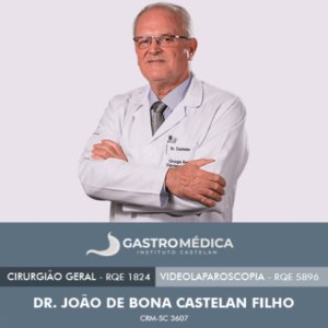 • Dr. João de Bona Castelan Filho, médico responsável pela equipe da Gastromédica, atua como cirurgião geral desde 1984, em videolaparoscopia desde 1993, e como cirurgião bariátrico desde 2001. Após cursos no Brasil e na Europa iniciou as videocirurgias em Criciúma em 1993 com as primeiras cirurgias de colecistectomia (retirada da vesícula biliar). Este pioneirismo foi constantemente desenvolvido, e introduzidos vários procedimentos como cirurgias de baço, glândulas adrenais, refluxo gastroesofágico, hérnias, apendicectomias, esôfago, pâncreas e vários outros, incluindo cirurgias oncológicas.